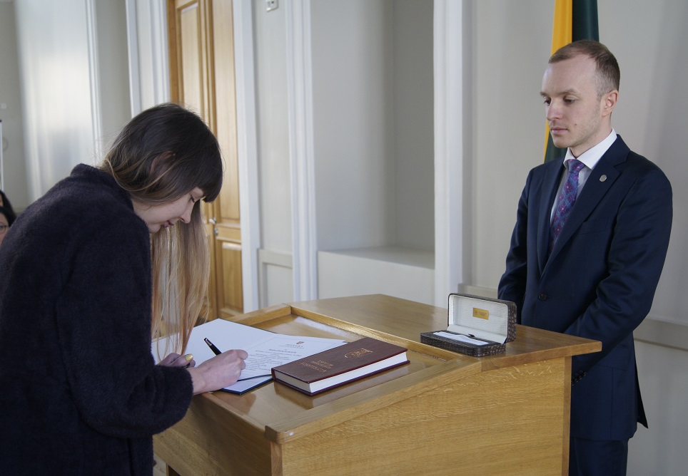 Vasario 26 d. Vidaus reikalų ministerijos Baltojoje salėje vyko priesaikos Lietuvos Respublikai ceremonija – Lietuvos Respublikos piliečiais tapo septyniolika asmenų, kuriems Lietuvos Respublikos pilietybė suteikta ar grąžinta Lietuvos Respublikos Prezidento dekretu.