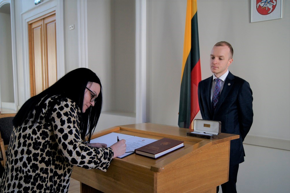 Oath of allegiance to the Republic of Lithuania was administered by Vice-Minister of the Interior Tautvydas Tamulevičius.